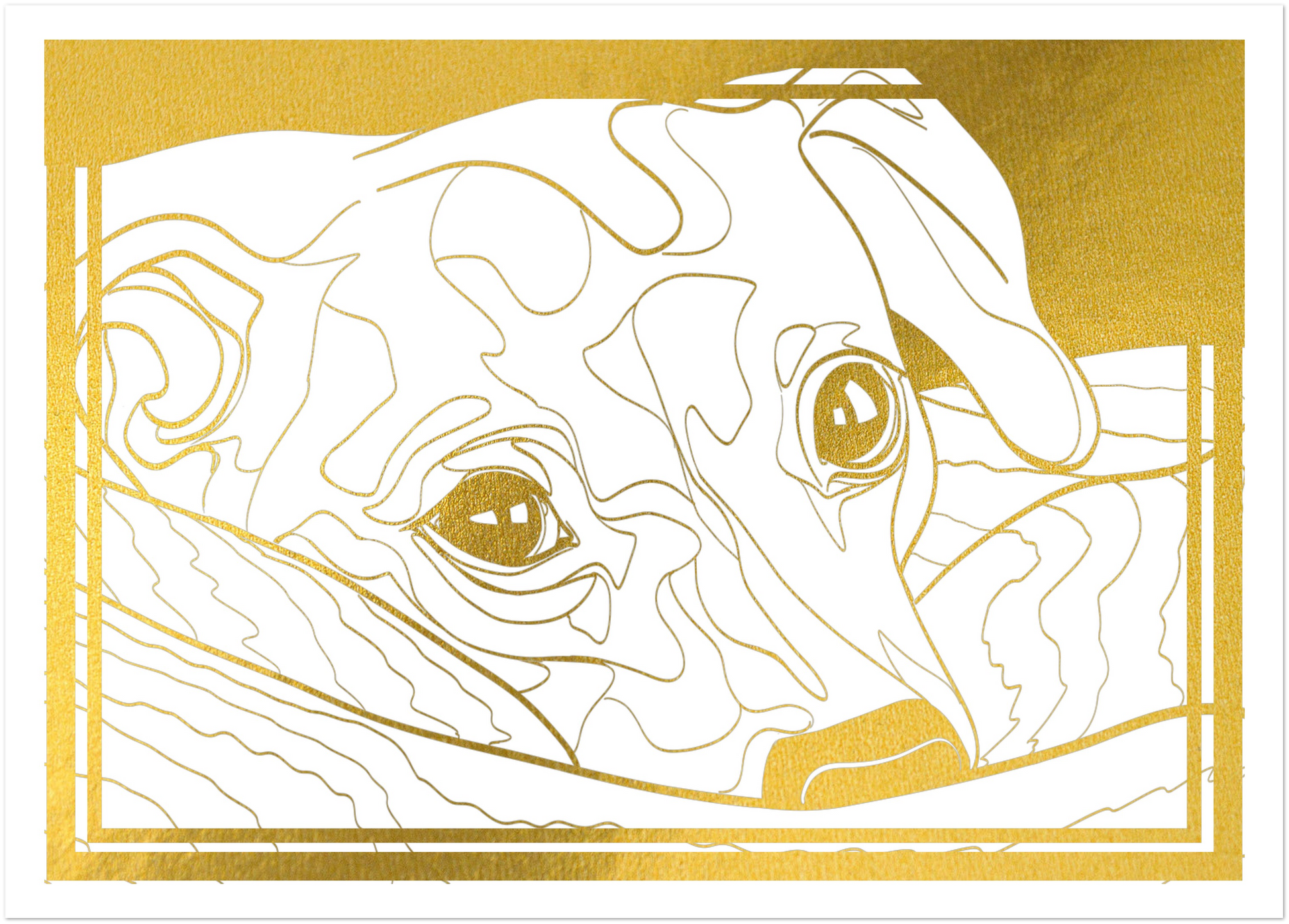 Your finished portrait is printed on premium-quality art paper and available in a variety of sizes up to 24×36. For an added touch of shimmer, sizes up to 11×17 can be printed with metallic foil accents, creating a striking, modern statement piece that catches the light beautifully.